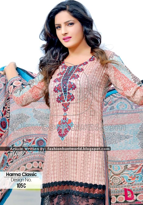 In summer season every woman wants to look delightful and exceptional in casual and formal gathering. Therefore, she chooses remarkable clothing that gives an eye-catching look at functions. Well, just a while now famous clothing brand Dawood Textile has launched Harma Classic Lawn 2015 Volume 1 for women. Right here in this post we are going to share the most demanding collection by Dawood Lawns. Yes, Dawood Textile has brought their another seasonal collection for modern ladies. These dresses are designed awesomely with new prints and patterns which enhances your personality. These new lawn dresses of dawood are perfect for all types of age group of women. You can find these stunning dresses at affordable prices. This dawood lawns dress range is full of with new colorful dresses. In this collection, Dawood Lawns have presents bold and bright colors. Just have a look at the pictures of this collection.